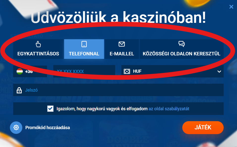 A bejelentkezés menete gyors és felhasználóbarát. A játékos a főoldalon található „Belépés” gombra kattint, majd megadja az e-mail címét vagy telefonszámát, valamint a jelszót. Amennyiben a kétfaktoros hitelesítés engedélyezve van, egy SMS-ben vagy e-mailben kapott kódot is be kell írni.